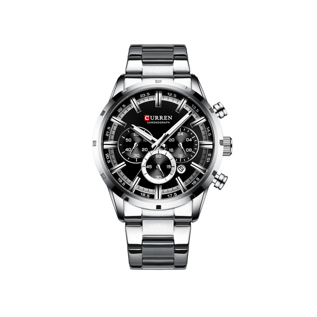 CURREN 8355 Multi-function Steel Strap Watch for Men - Silver & Black