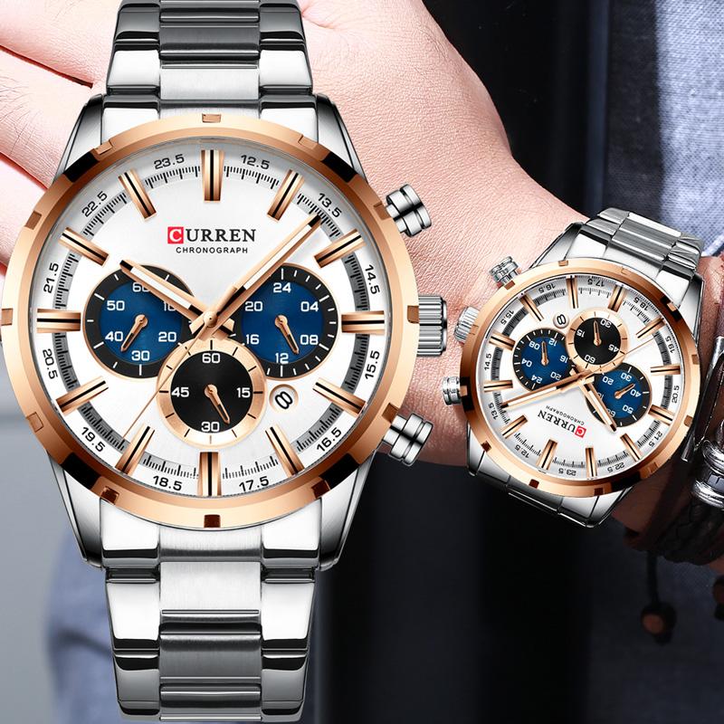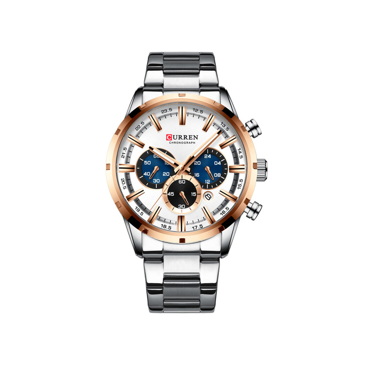 CURREN 8355 Multi-function Steel Strap Watch for Men - Silver & Rose Gold
