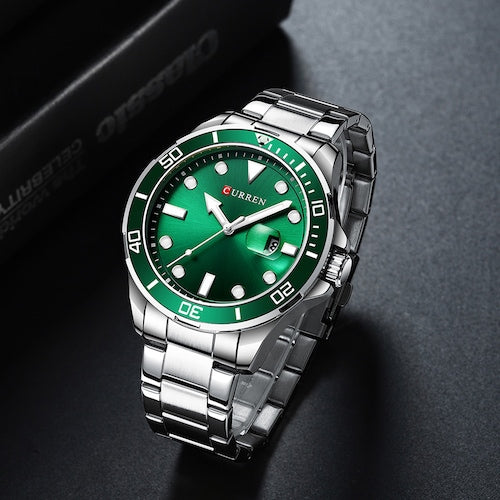 CURREN 8388 Chronograph Stainless Steel Watch for Men - Silver & Green
