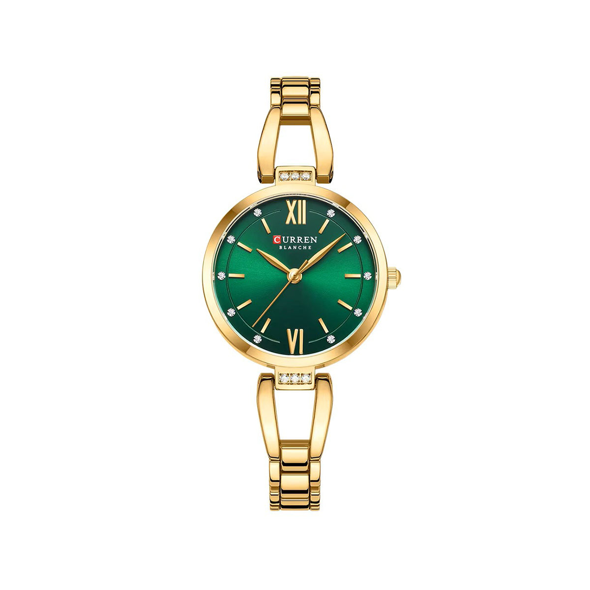 CURREN 9092 Elegant Stainless Steel Classic Women Quartz Watch- Gold Green