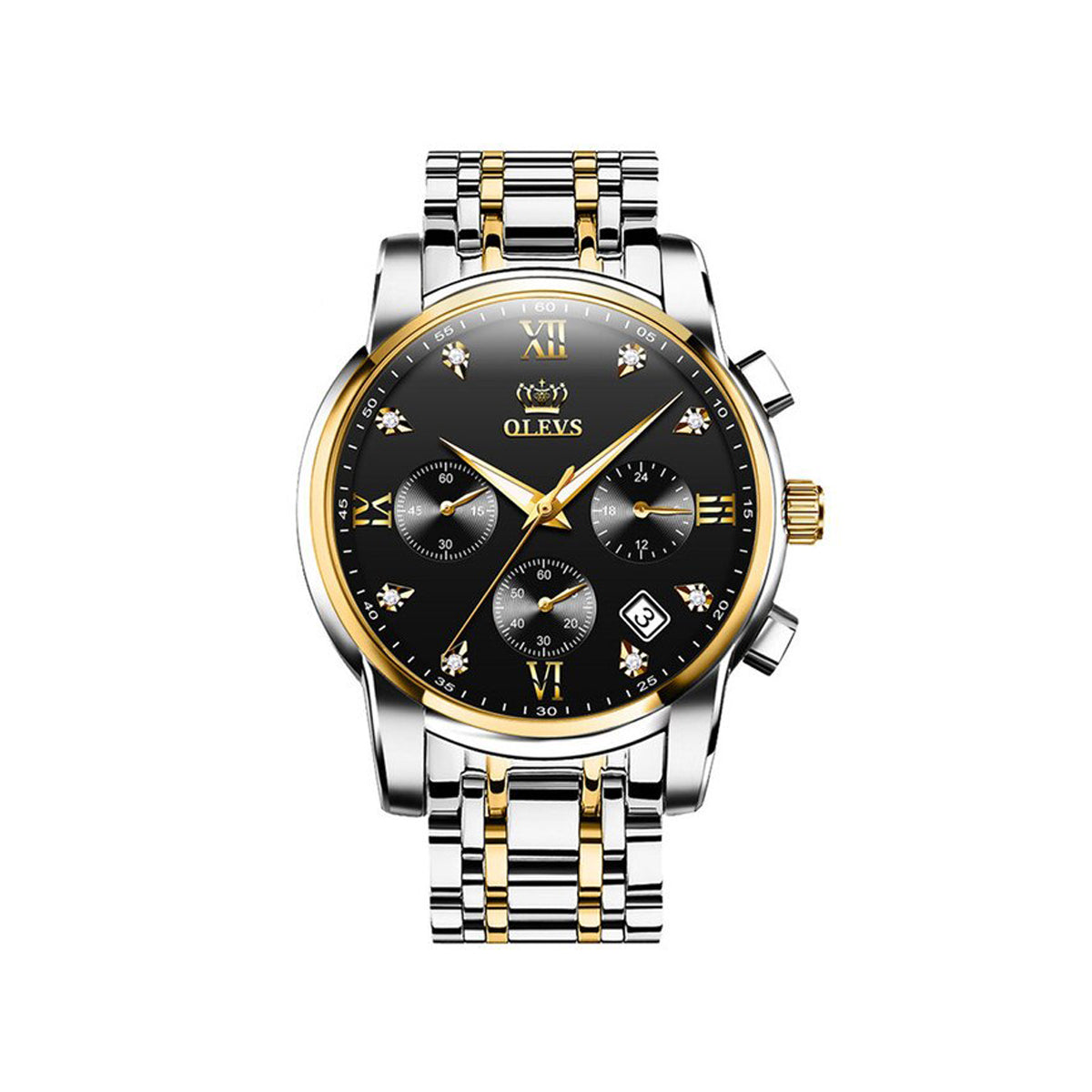 OLEVS 2858 Luxury Luminous Chronograph Men wristwatch- Silver Gold & Black