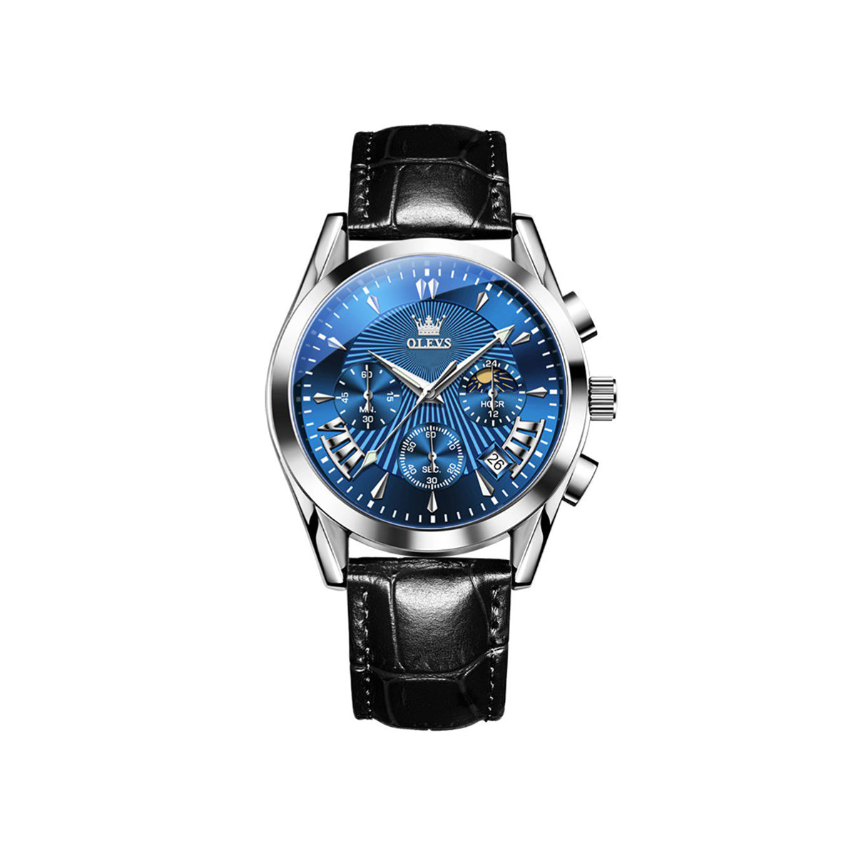 OLEVS 2876 Luxury Fashion Leather Quartz Wristwatch Men- Black Blue