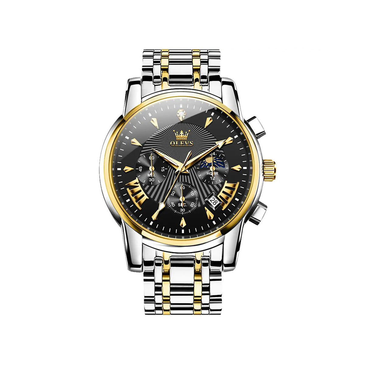 Olevs 2892 Chronograph Quartz Watch For Men - Silver & Black