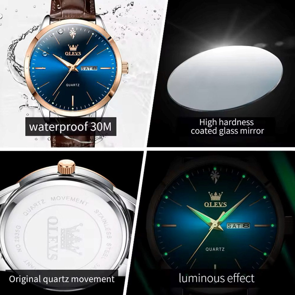 Olevs 2935 Belt Band Quartz Watch for Men - Chocolate & Blue