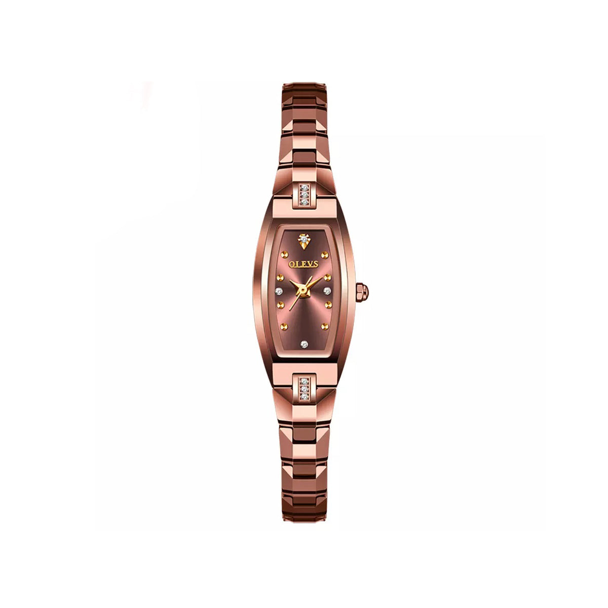 OLEVS 5501 Tungsten Steel Elegant Design with Diamond Relogio Feminino Quartz Women's Watch- Rose Gold