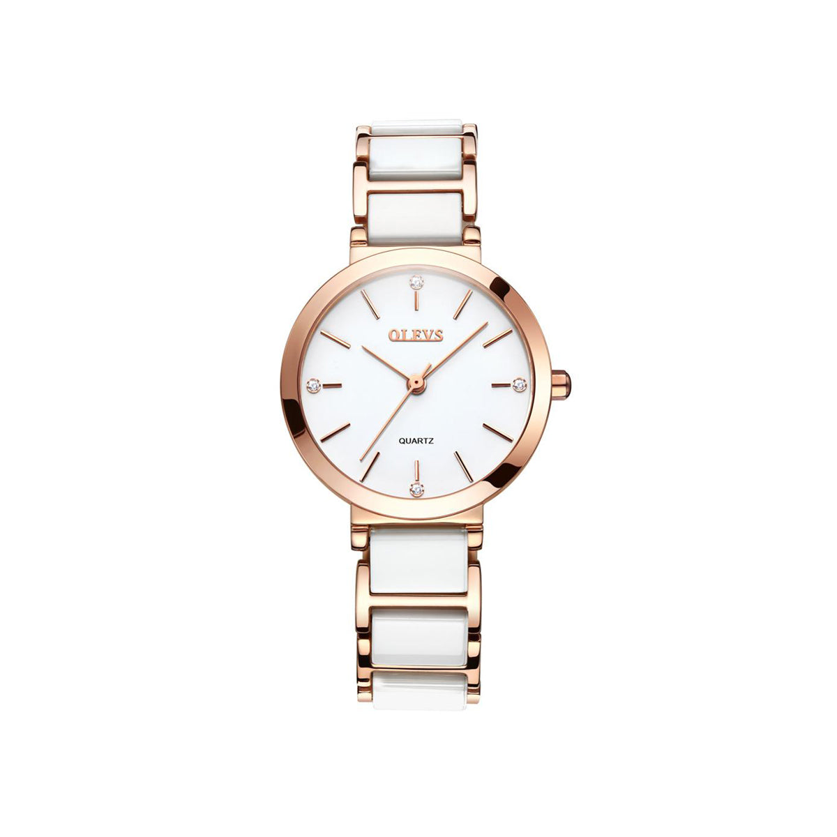 OLEVS 5877 Ceramic Classic fashion Quartz movement women watch- Rose Gold & White