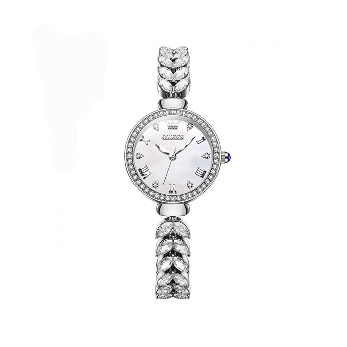 OLEVS 9971 Trendy Rhinestone Bracelet Watch For Women-Silver