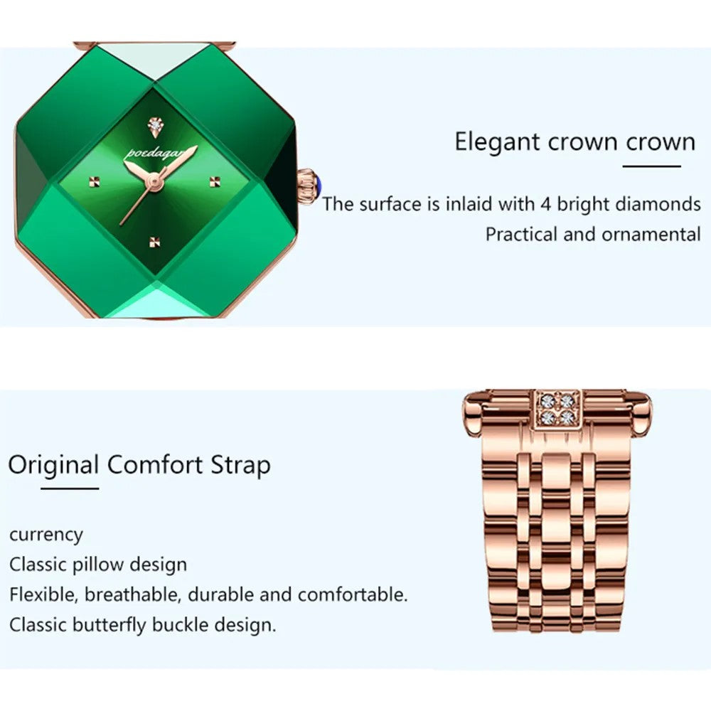 POEDAGAR 005 Swiss Ultra Thin Fashion Decorative Women Watch- Rose Gold & Green