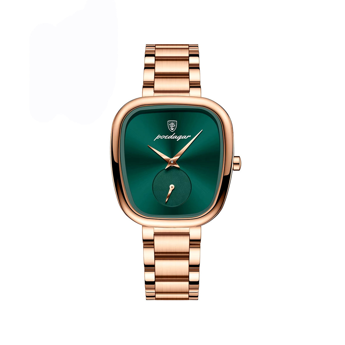 Poedagar 783 New Unique Design Stainless Steel Ladies Watch-Rose Gold & Green