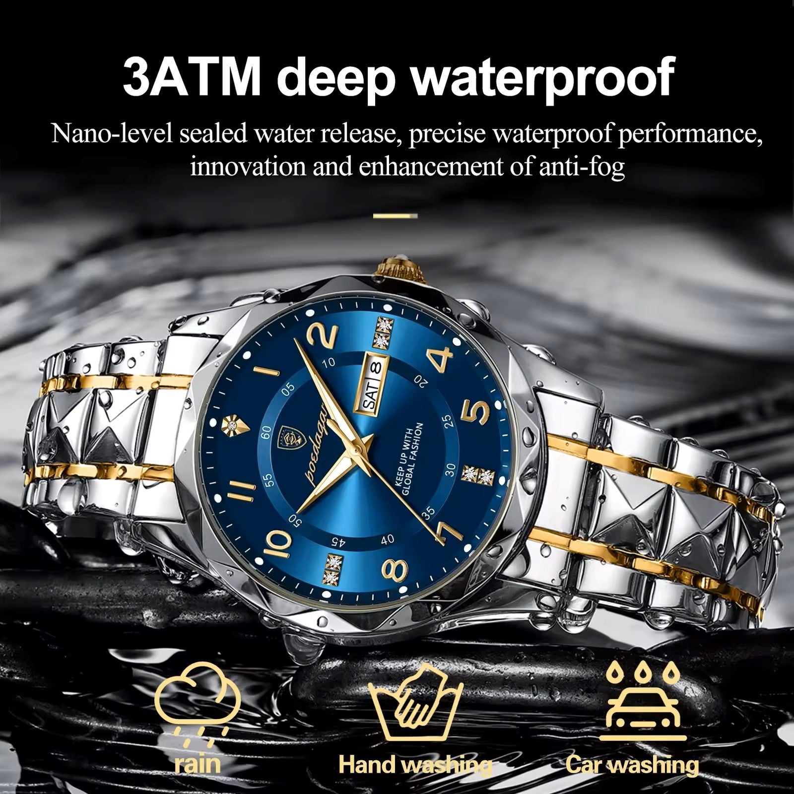 - Feature: Luminous,Auto Date,Complete Calendar,Diver,Water Resistant,swim,Week Display,luminous hands