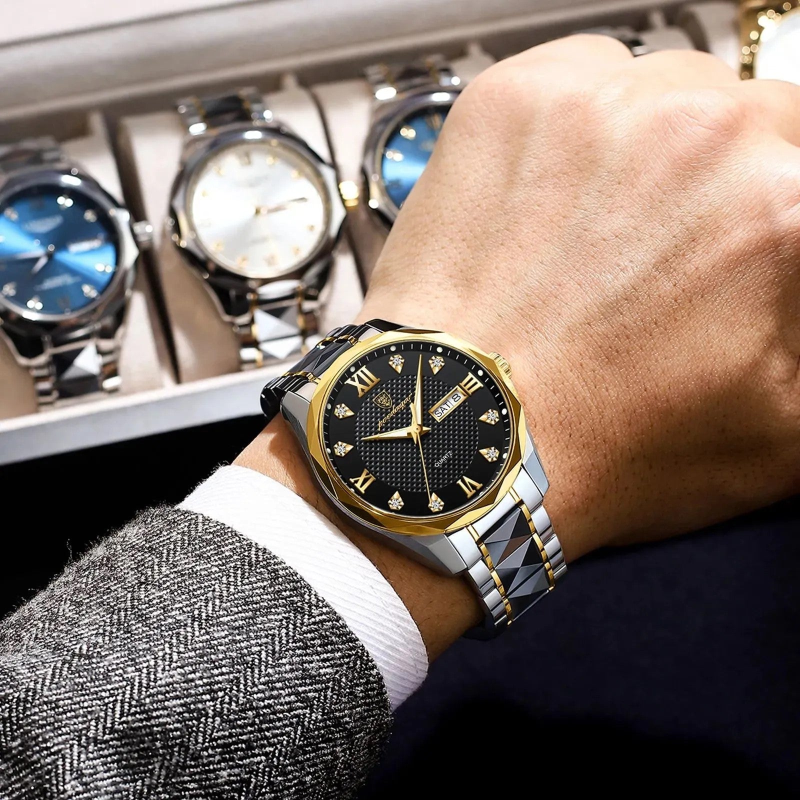 Poedagar 998 Two-Tone Stainless Steel Waterproof Men’s Watch - Silver Gold & Black