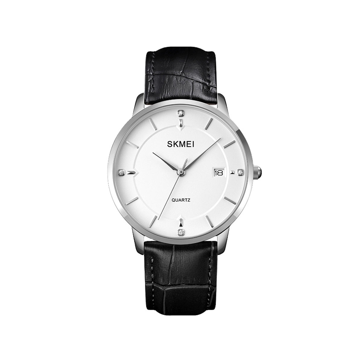SKMEI 1801 Stainless Steel Leather Quartz Men’s watch- Black Silver
