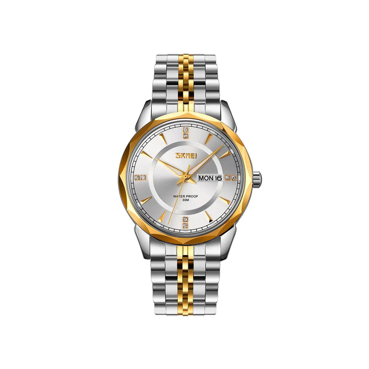 SKMEI 9268 japan movement quartz Stainless Steel Wristwatch for Men's- Silver Gold