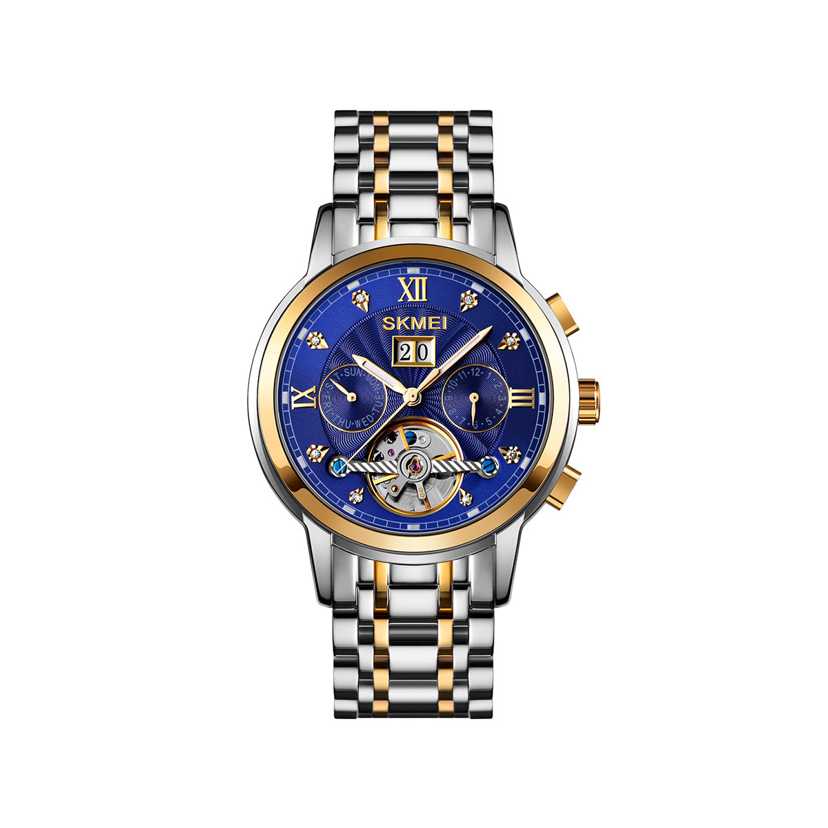 SKMEI M029 Mechanical Watch- Silver Gold & Blue